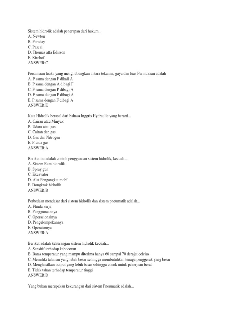 Ulangan Harian Tdo Hidrolik Dan Pneumatik Quiz Quizizz