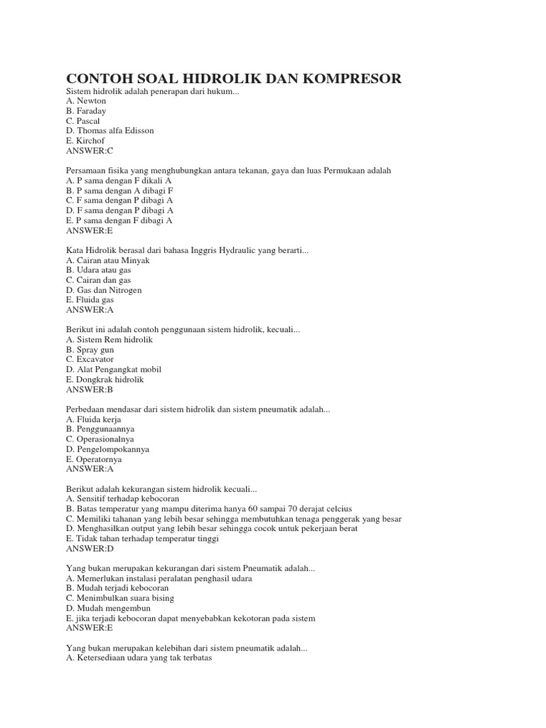 Udara lembab dan berminyak E. Tenaga yang dihasilkan oleh sebuah tabung pneumatic bergantung pada dua hal. Komponen pneumatik yang diperlukan untuk memampatkan udara adalah.