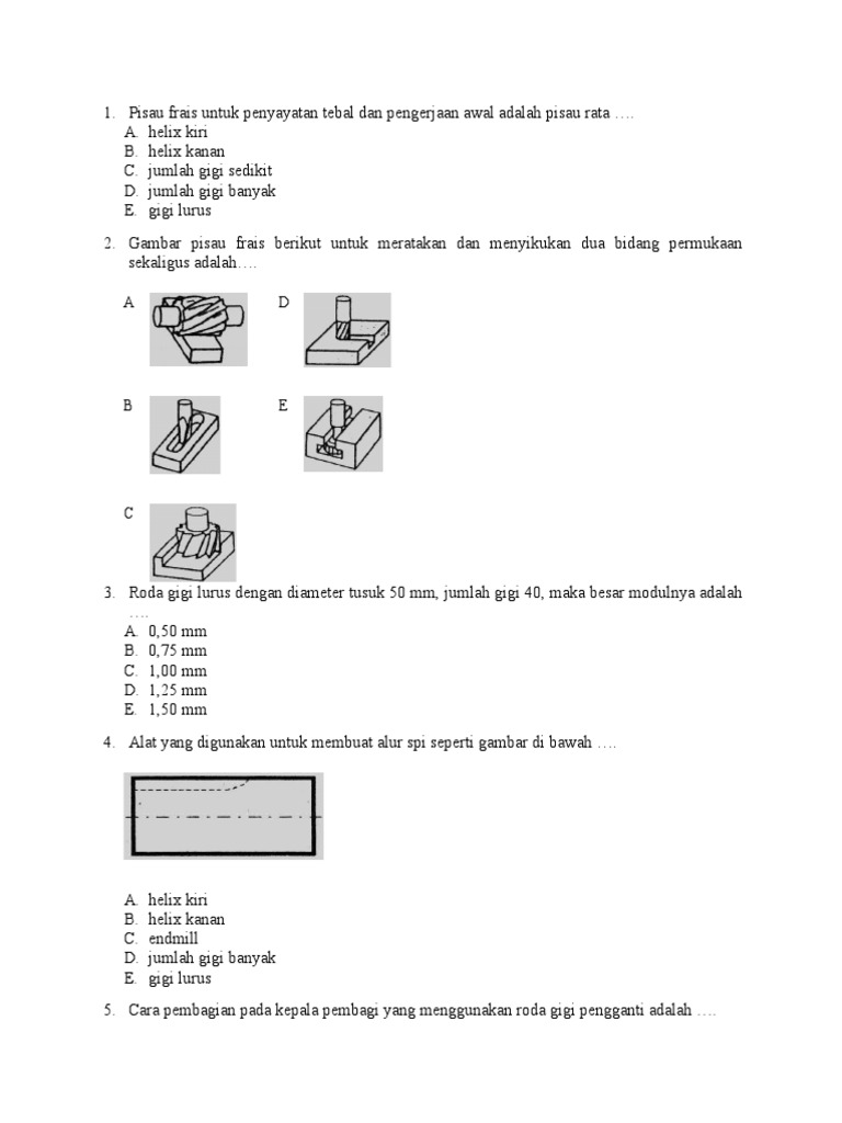 Latihan Dan Pembahasan Soal Macam Macam Pisau Frais