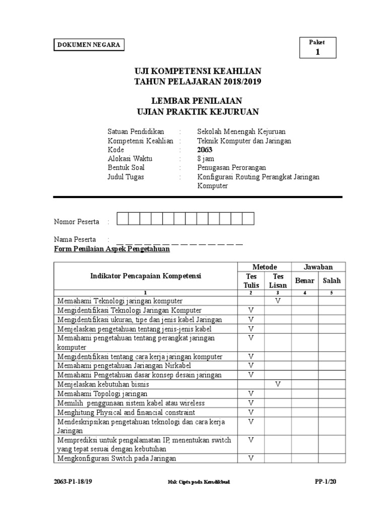Format Penilaian Ukk 2019 Jurusan Tkj